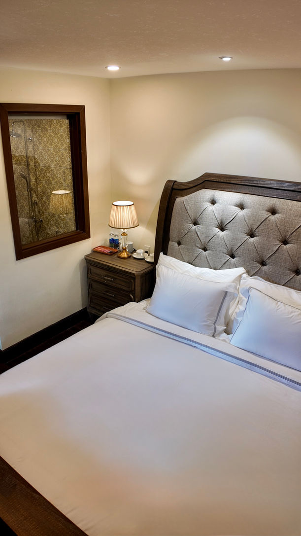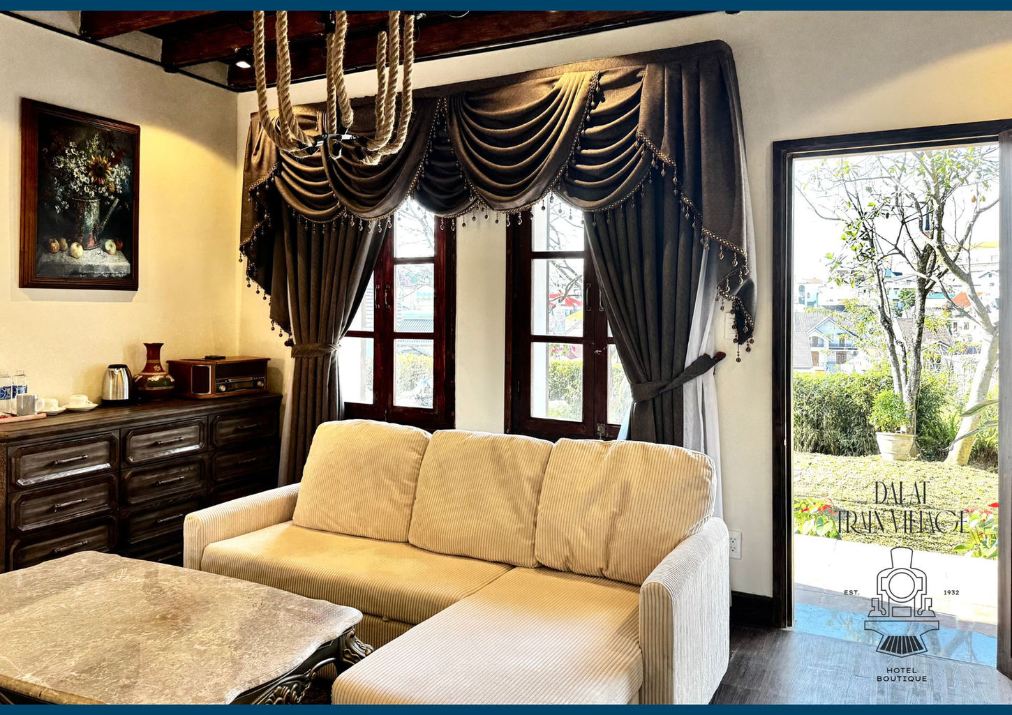 The Deluxe Room sits on the upper floor of our heritage villas, receiving abundant daylight through large Art Déco windows. Overlooking pine gardens and the gently curving paths of the historic railway compound, the room offers a refined French–Indochine atmosphere .. warm, serene and ideal for guests seeking a peaceful highland escape.