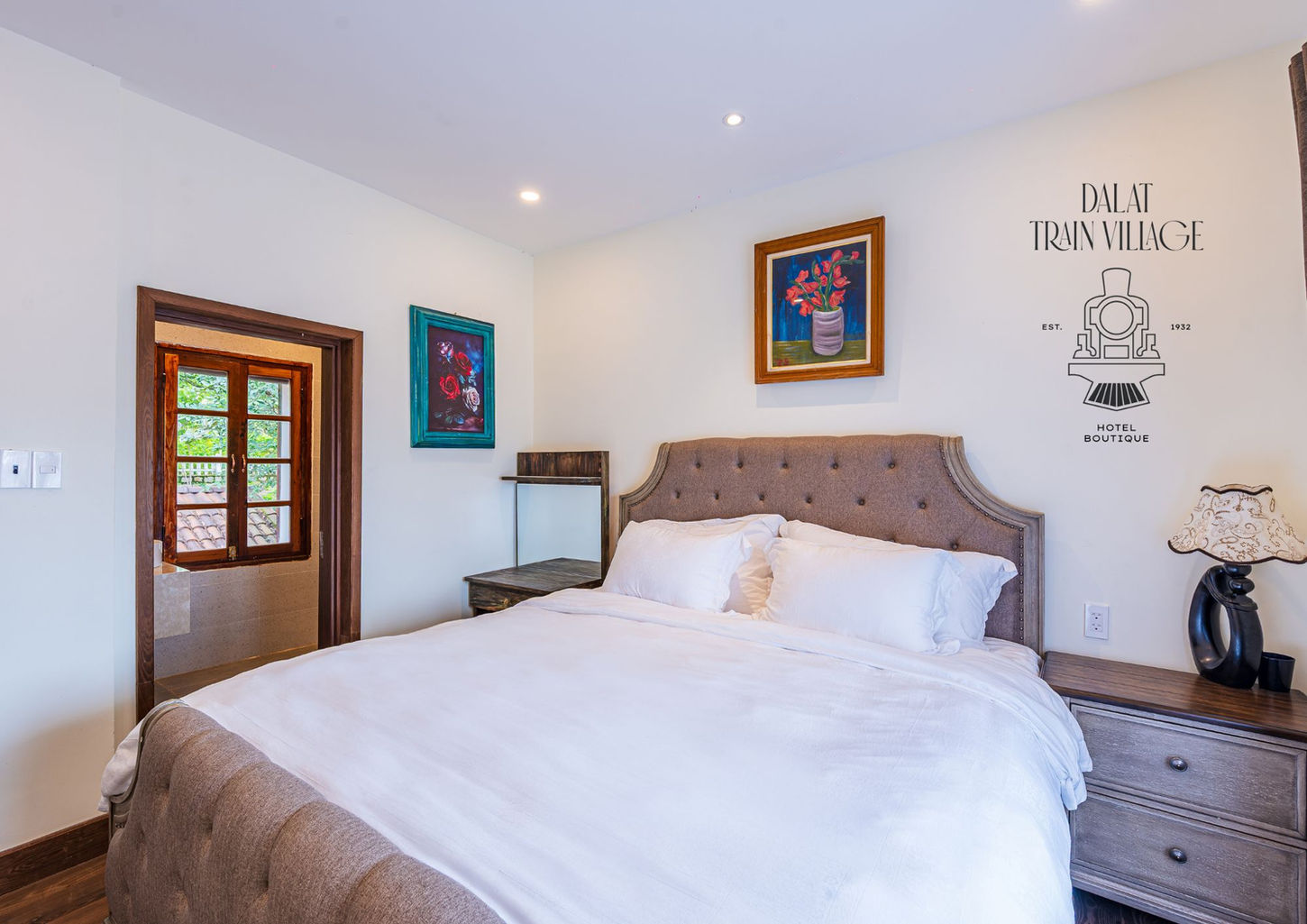 Set on the ground floor of our 1930s heritage villas, the Superior Room retains the original railway-housing spirit with thick stone walls, steep roofs and symmetrical French windows. Surrounded by pine gardens and winding hillside paths, the room offers a warm, intimate space where guests can enjoy Dalat’s misty mornings and unhurried rhythm.